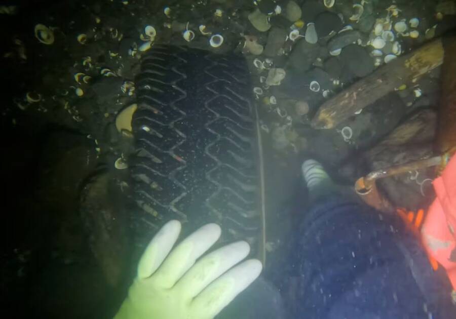 “Karşımdaki büyük bir çökme vardı,” dedi Mayo. “Ve su biraz temizlenince bir lastik gördüm ve anladım.”