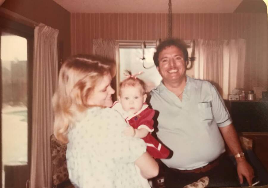 FacebookLinda Brown, months before her murder, holding baby Krystal while David Brown smiles behind her.