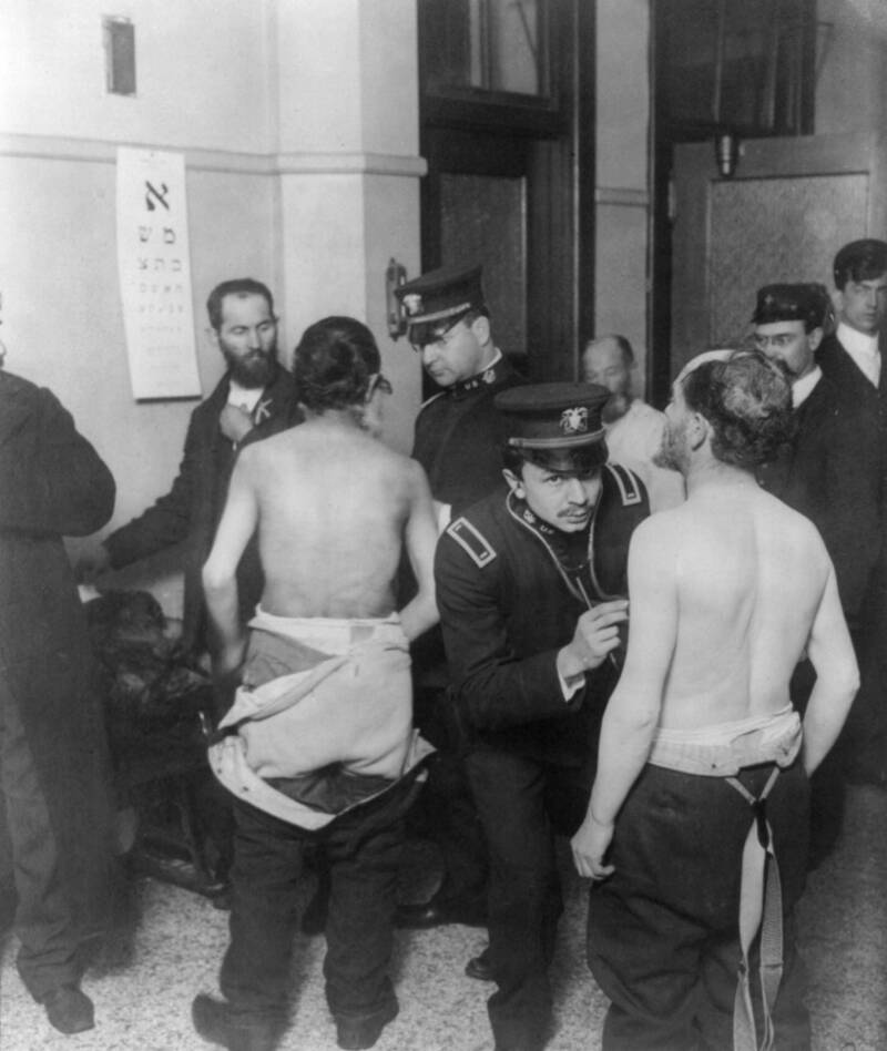 Die Einwanderer wurden auch einer Reihe von Tests unterzogen. Ein Sehtest versuchte, Personen mit Sehproblemen zu identifizieren. Eine Nagel- und Hautuntersuchung suchte nach Ringelflechte oder anderen Pilzinfektionen. Ein Stethoskop wurde verwendet, um Herz- und Lungenprobleme zu erkennen. Und jeder, der den Anweisungen nicht folgen konnte – einschließlich Einwanderer, die wenig oder kein Englisch sprachen – wurde einer psychischen Untersuchung unterzogen.