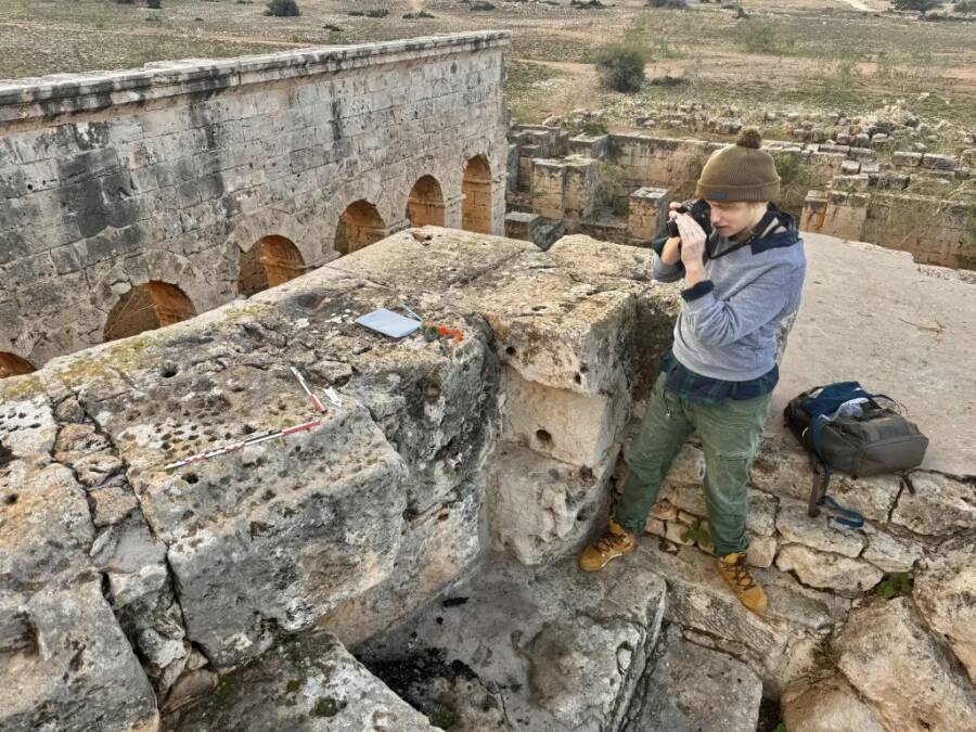 Radosław TusznioArkeolog Zofia Kowarska, Ptolemais kalıntılarında oyunun tahtalarını fotoğraflıyor.