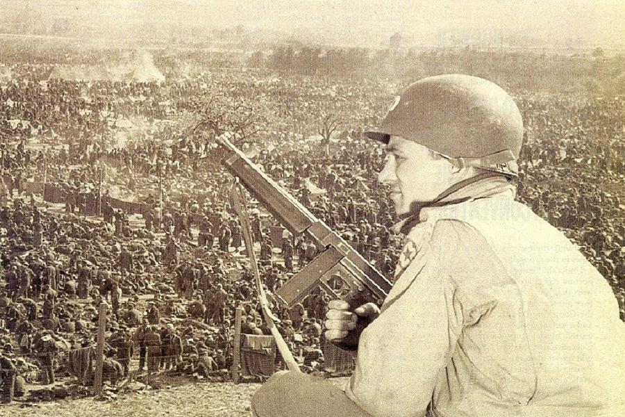 Halk Domaini1945 yılında yakalanan binlerce Alman askerini koruyan Rheinwiesenlager kamplarından biri olan Remagen'deki bir ABD askeri.