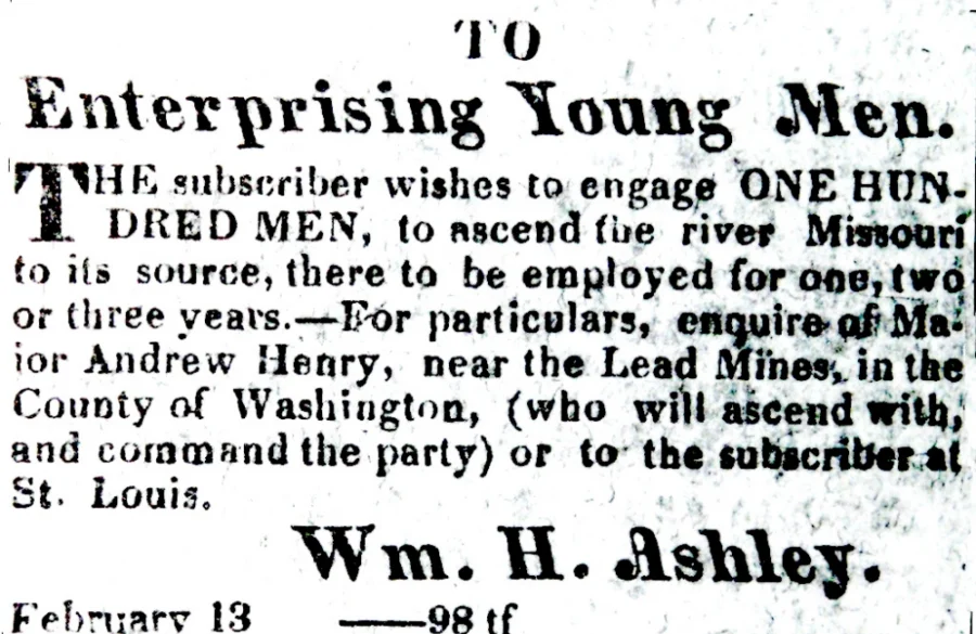 Wikimedia CommonsA newspaper advertisement that led to Hugh Glass joining “Ashley’s Hundred.”