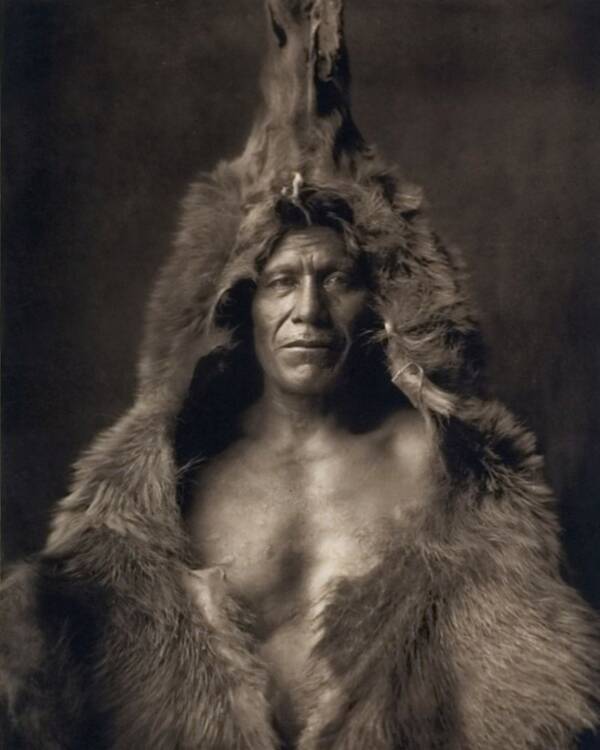 Wikimedia CommonsAn Arikara man wearing a bear skin. 1908.